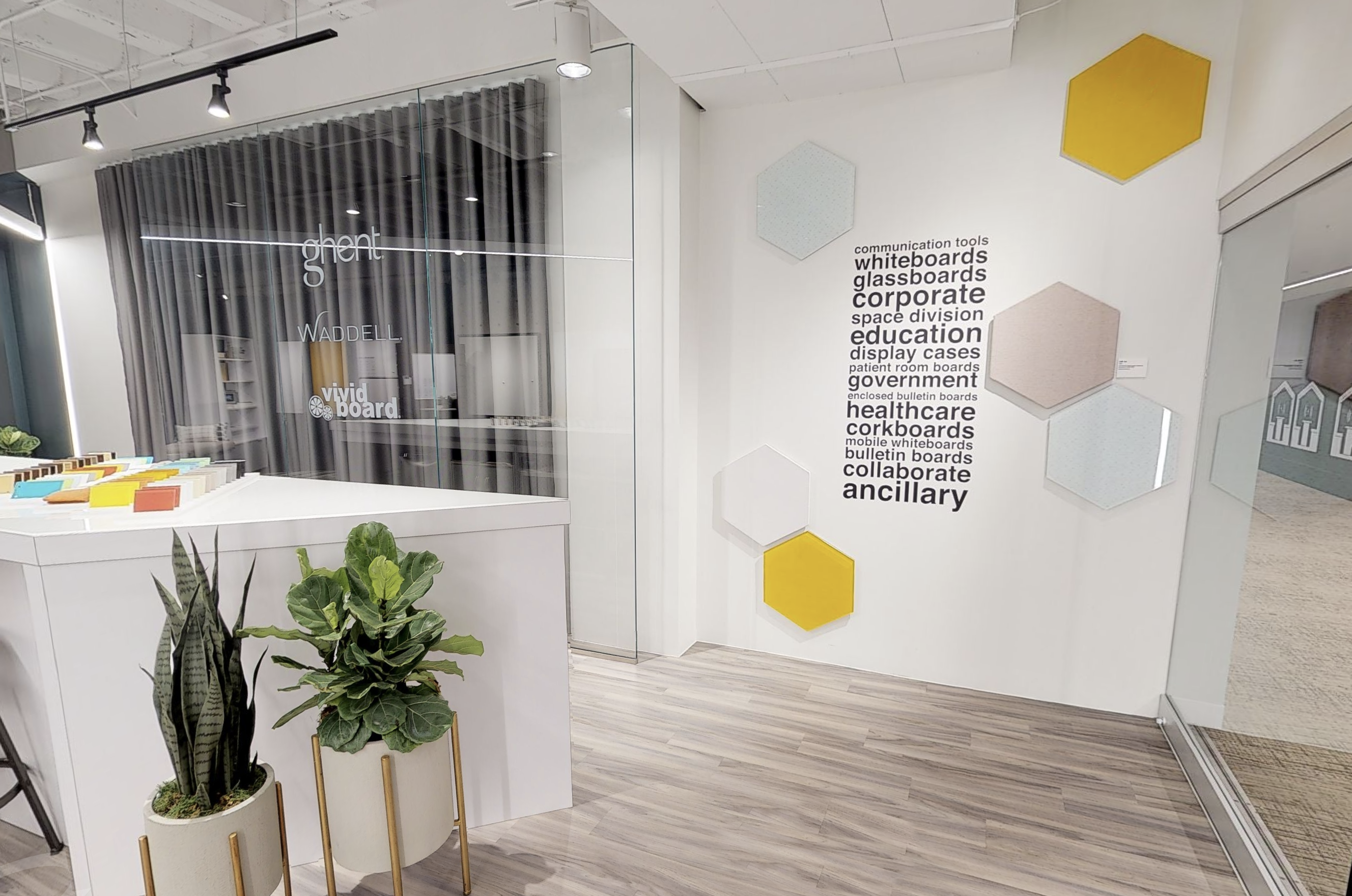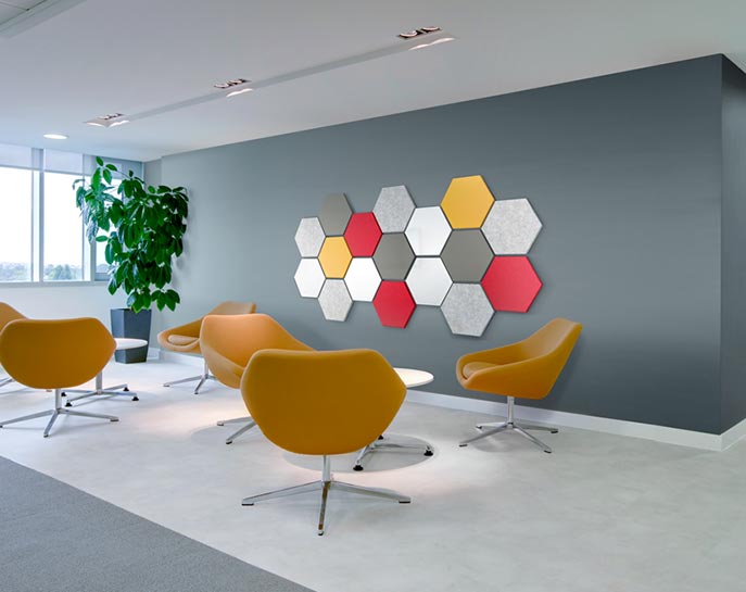 Consider adding Ghent’s hexagonal wall hanging, Hex, to your space for a dose of modernity. Cluster several together for a look that’s reminiscent of a buzzy honeycomb. Or scatter them throughout the office for a common thread across the rooms. Hex combines today’s needs for beautiful and unique spaces with materiality to dampen noise, post company news, and communicate.