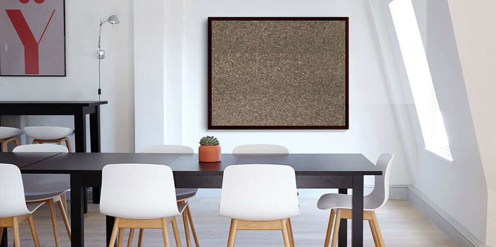 These bulletin boards do more than leave an impression! Our Impression Bulletin Boards come in a variety of frame options, cork and fabric colors to make this already-sleek design even more “you”! Our burned chocolate cork is inherently unique compared to standard cork, and is smooth, self-healing and incredibly resilient. Displaying announcements and other messages with sophistication, this customizable and unique option is sure to turn heads.