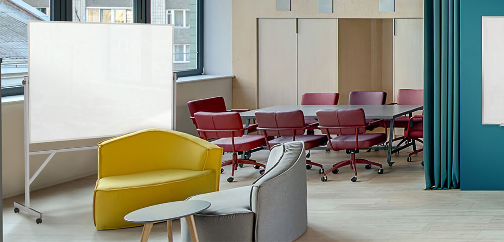 Pointe Mobile Glassboard is a multi-functional glassboard and space partition; and just so happens to be one of our newest product launches. With a powder-coated steel frame and glass writing surface, it’s a sleek take on a classic wall whiteboard. Line up multiple to create on-the-go workspaces or use one for a mobile, configurable writing solution.