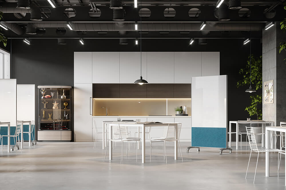 Reed Acoustic Partition mitigates noise, creates impromptu workspaces, and offers privacy. Our acoustic PET fabric comes in seven colors, complementing the black base and frame, as well as your office. Part of a functional office is awareness around noise mitigation, and our Reed partition provides sound-reducing benefits on both sides of the panel, for 360 degrees of silence – and focus.