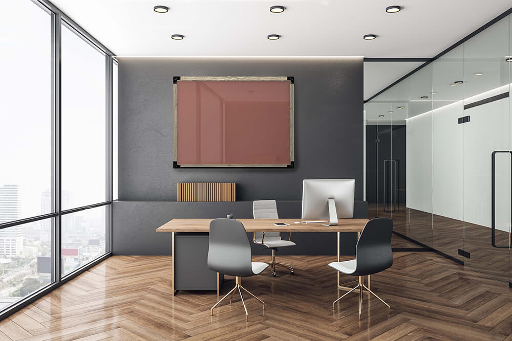 Pulling inspiration from the industrial interior design wave we have seen over the last few years, our Prest Wall Glassboard & Whiteboard and Prest Bulletin boards are supported by a wood frame with steel matte black hardware. With office design being a constantly changing front, we wanted something that would compliment trendy designs as well as more traditional, classic interiors.