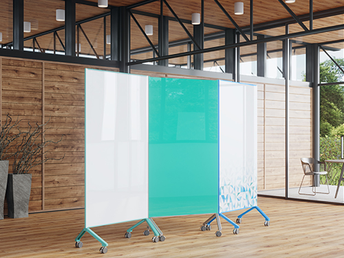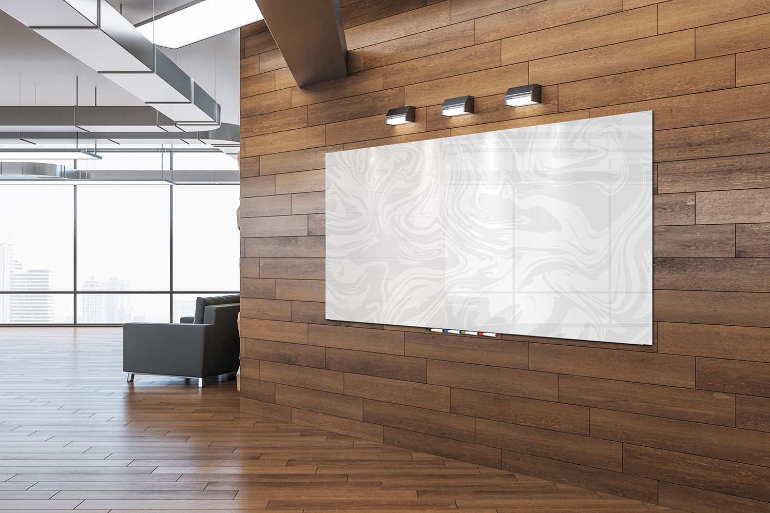On many of our Border, Aria, Harmony, Hex, Pointe, and Coda glassboards, as well as the Geo Collection, we offer custom logo printing for an extra added customization. In addition, our glass products can make your board in any of our standard 18 hues from the Ghent Color Library or match to virtually any PMS color. Our glassboards are colored with an eco-friendly water-based paint.