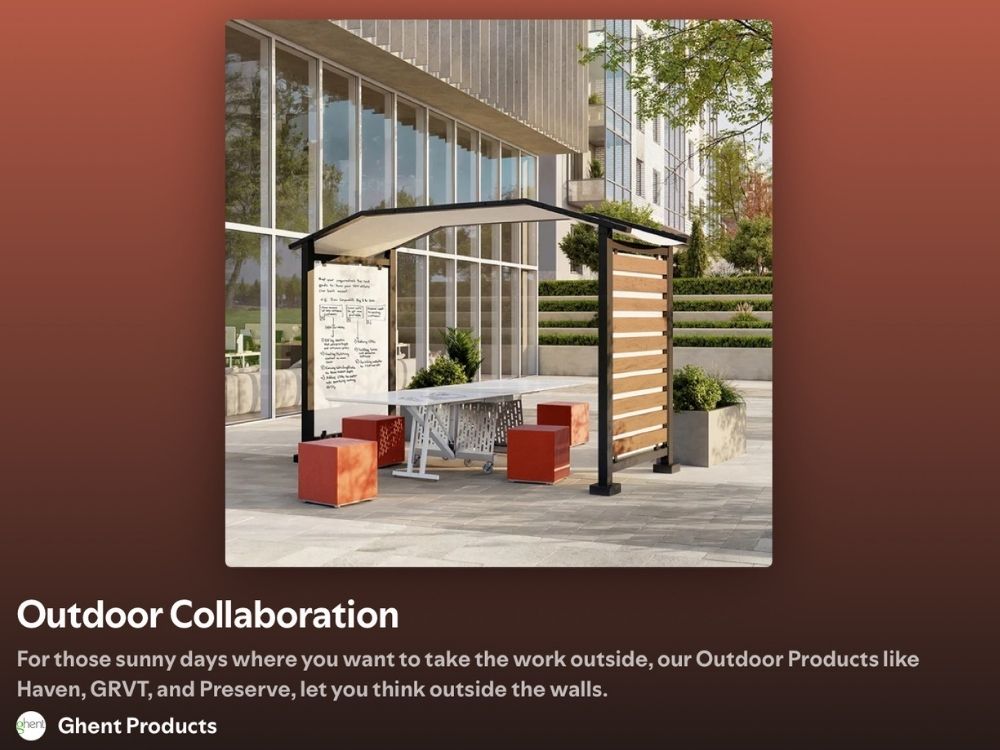 Ghent's Outdoor Collection was designed with flexibility in mind. It offers a wide range of solutions from free-standing designs to wall-mounted options and fully mobile units to support outdoor learning and collaboration. The collection is built to adapt to any environment while maintaining durability and performance. Explore the full Outdoor Collection to find the right fit for your space.