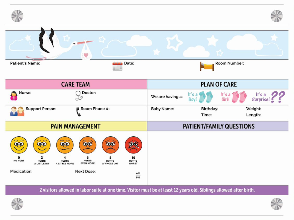 Essential Information Fields for Labor and Delivery Whiteboards Thanks to whiteboard customization, facilities can tailor their whiteboards based on the rooms they will be placed in. When it comes to labor and delivery patients, these are the essential information fields that have been found to be most helpful. Jul 27, 2020 READ