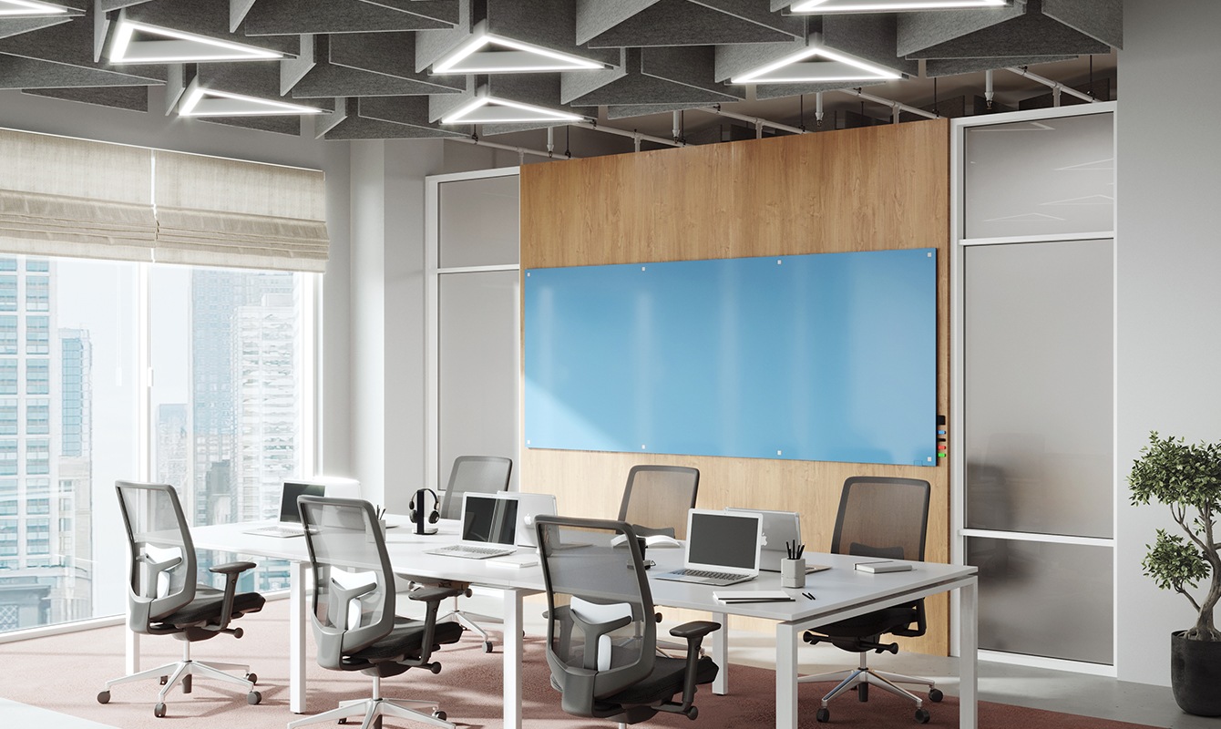 Explore your creative expression through the options of color, design, shape, size and even texture. Choose between our Prest, Stroll and Pointe mobiles, our wall-mounted Aria and Harmony glassboards and our unique shapes with Hex and Coda. Additionally, you can create a beautiful art installation that blends writing surfaces with acoustic solutions and tackable fabrics.