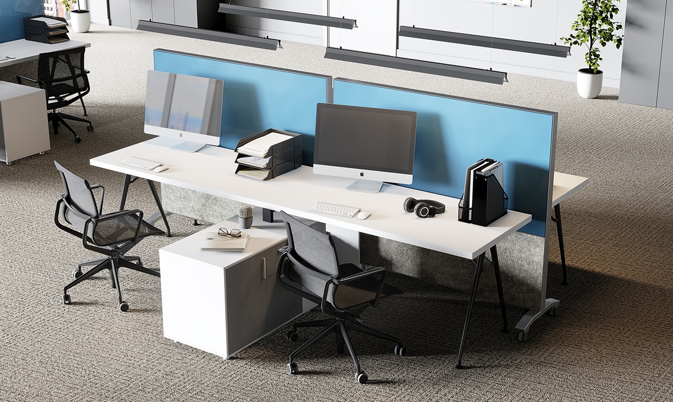 Line several mobiles side-by-side for moveable space division or roll them from room-to-room for your flexible space needs.