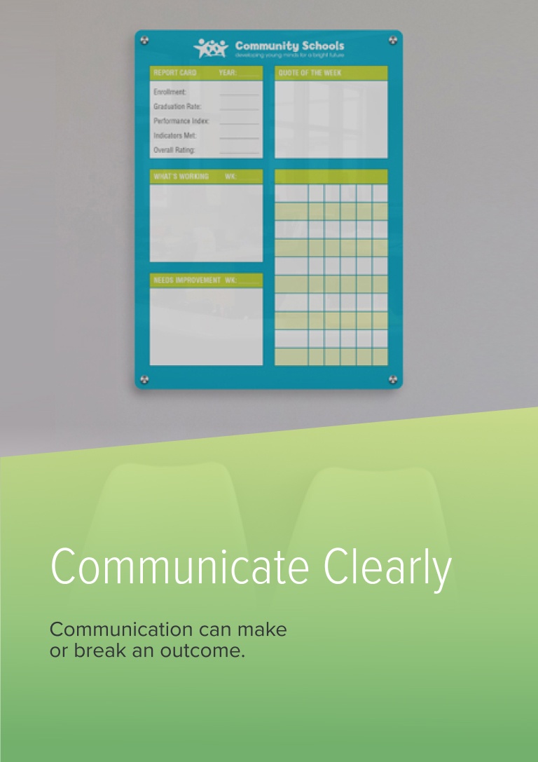 Custom whiteboards feature graphics that are permanently embedded into a non-ghosting whiteboard surface, helping you to communicate more effectively.