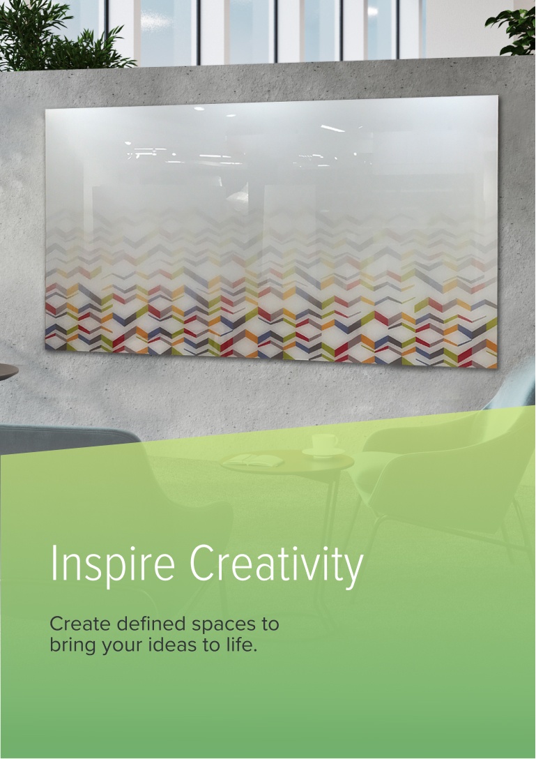 Graphically enhanced glassboards provide a functional art-like solution for displaying images, timelines, logos, metrics and more.