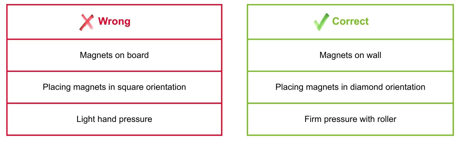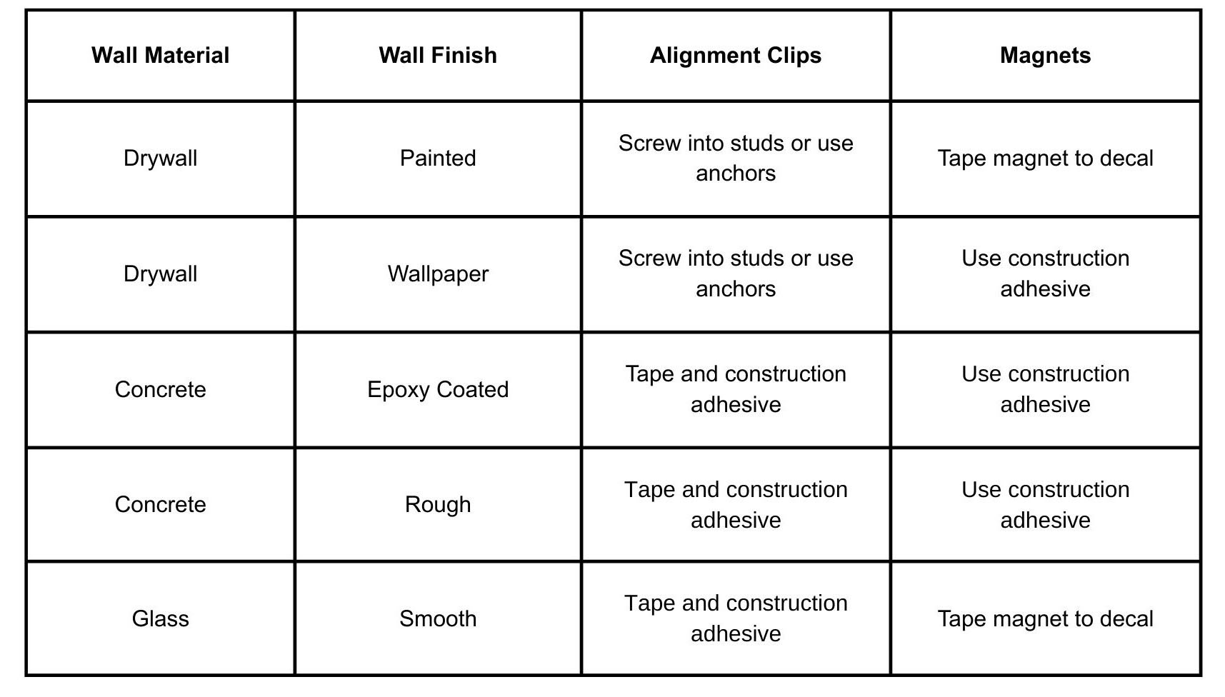 Use appropriate anchors if not mounting into studs. Two people are recommended for larger sizes. Avoid installing near heat sources or direct sunlight. Clean only with non-abrasive cleaners.